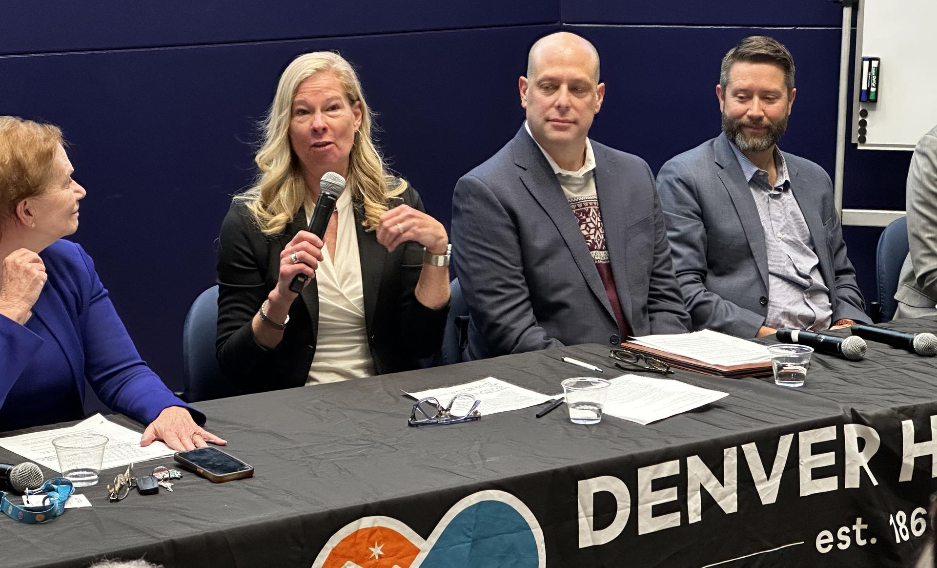 CMS President Kim Warner, MD, shared the podium with other leaders at the Health Care 2025: Preparing for Change event, emphasizing the need for collaboration to reduce administrative burdens, address workforce issues, and protect coverage during the 2025 state legislative session. Image above, from left: Denver Health CEO Donna Lynne, Dr.P.H., Dr. Warner, Colorado Hospital Association CEO Jeff Tieman and Colorado Community Health Network CEO Ross Brooks. |