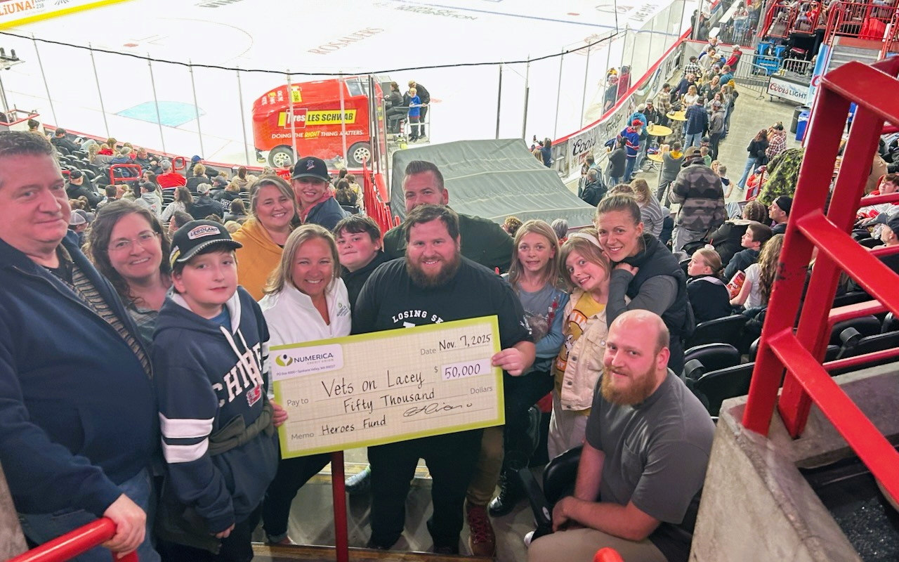 During the game, Numerica presented VOA with the very first Numerica Heroes Fund Grant! This is a $50,000 investment for Vets on Lacey. The transformational gift will help complete the new courtyard space, creating a welcoming environment where veterans can connect, heal, and rebuild.