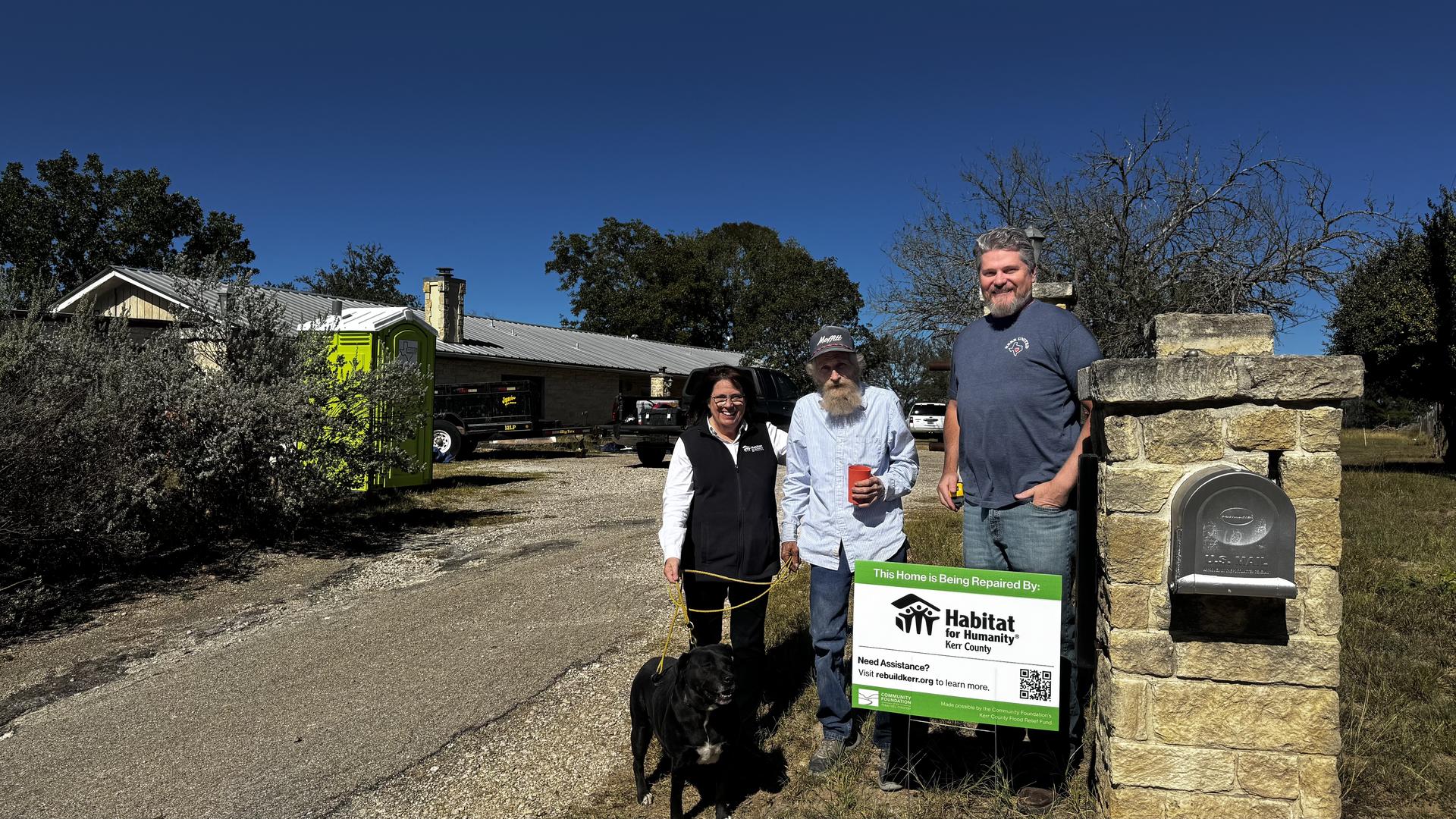 When Habitat for Humanity’s construction manager Jay visited for the first time, he found LA living in an RV beside the damaged house. What began as a routine assessment turned into hours of conversation about the home LA built and the memories it holds. His quiet strength reminded Jay of his own father and the two formed a genuine connection. Over the following weeks, Jay often stopped by before work with breakfast tacos. Those early morning conversations became part of the rebuilding process. Together, they were restoring more than a structure. They were rebuilding LA’s sense of home, dignity and hope. The Habitat team is working to complete repairs before the holidays so LA and his dog can once again sit on their porch and feel at home. |