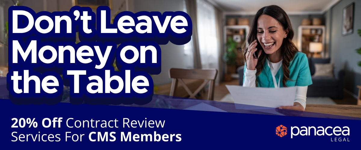 Panacea Legal’s contract review services help you evaluate your agreement, surface potential concerns, and move into negotiations with a clearer understanding of what’s at stake. Colorado Medical Society members receive 20% off contract review services with promo code CMS20.