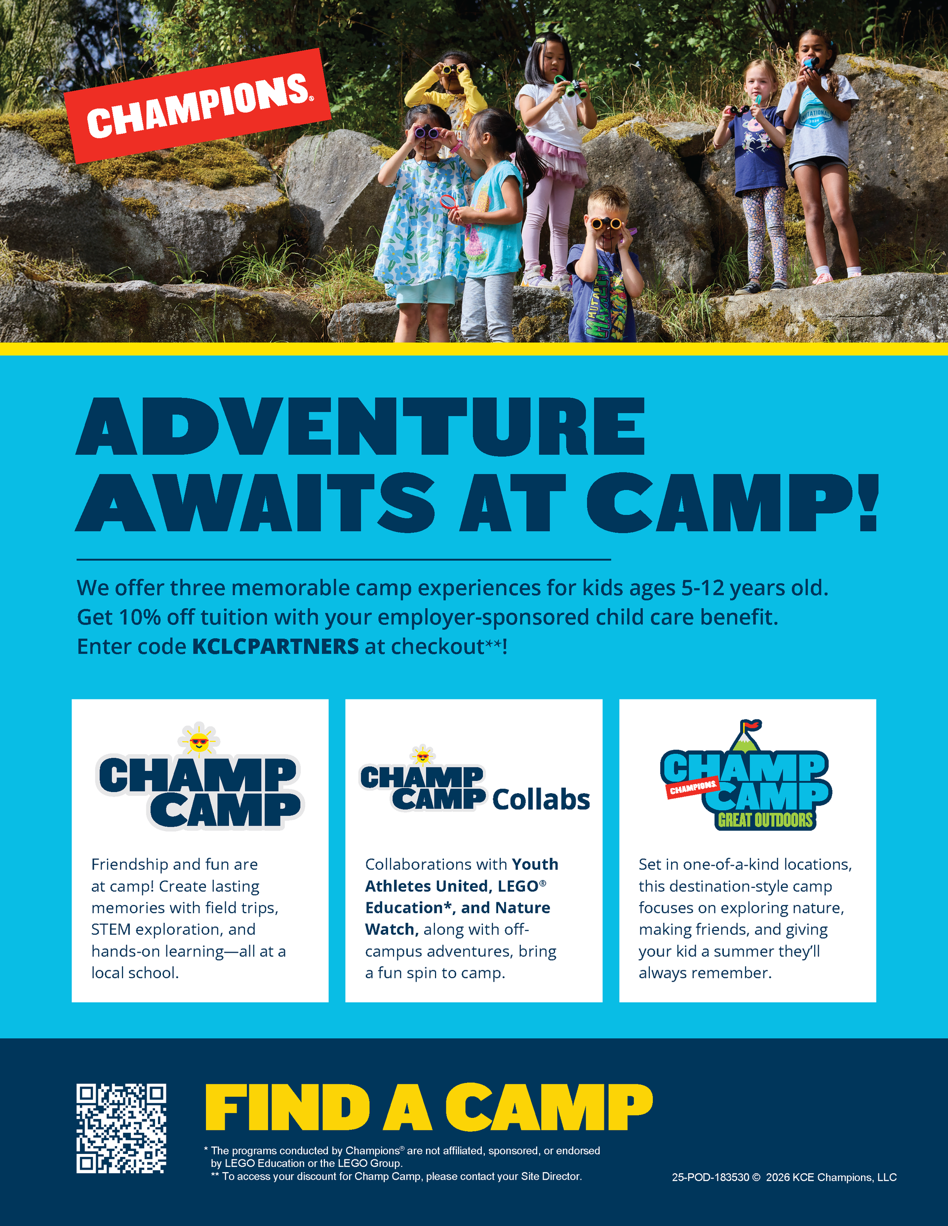 Save 10% with your Colorado Medical Society-sponsored discount this summer. Champions Champ Camp brings big fun to K–6th graders—from outdoor exploration and teamwork to hands-on STEM, creative projects, and new friendships. 🌞✨ Plan ahead and make summer easy. Registration is open!
